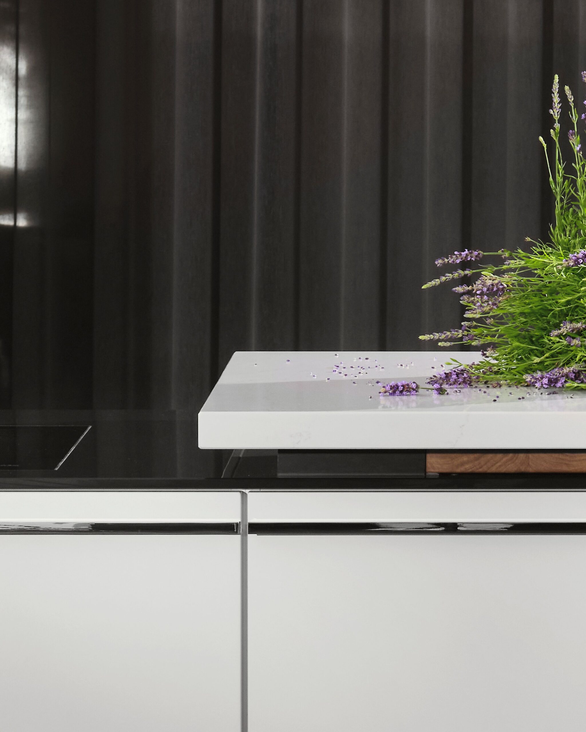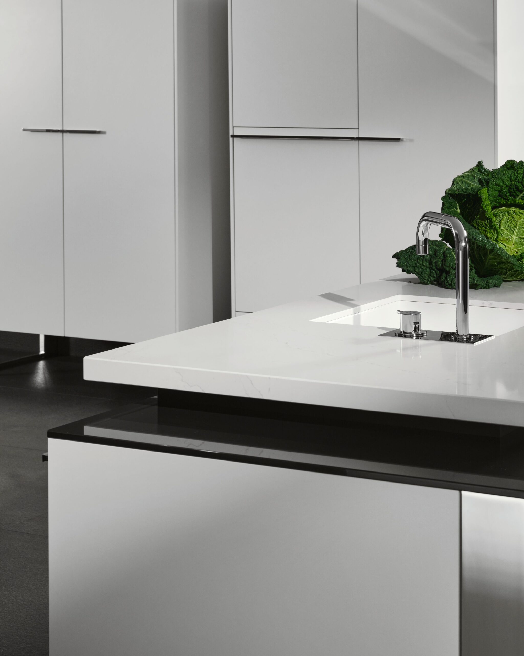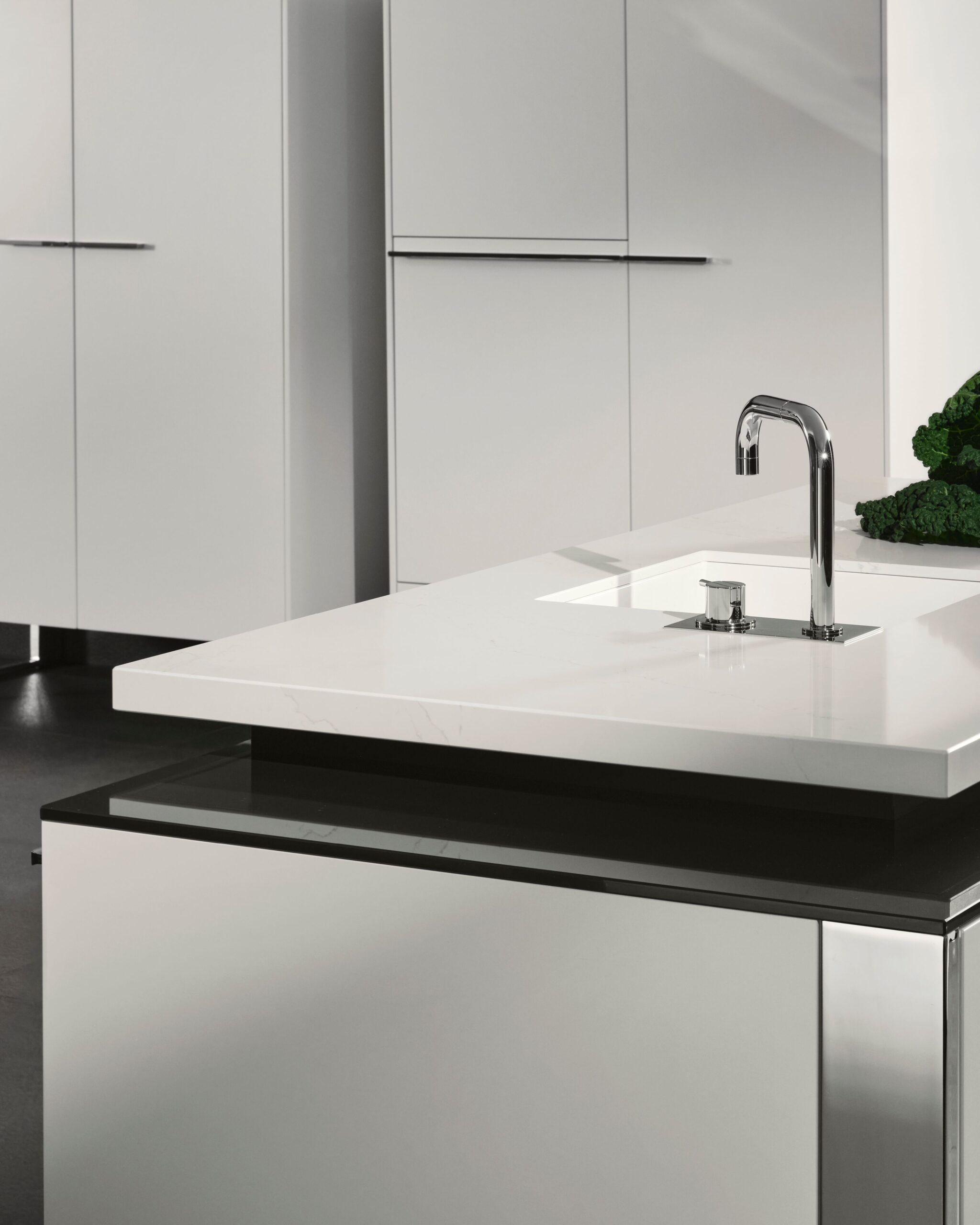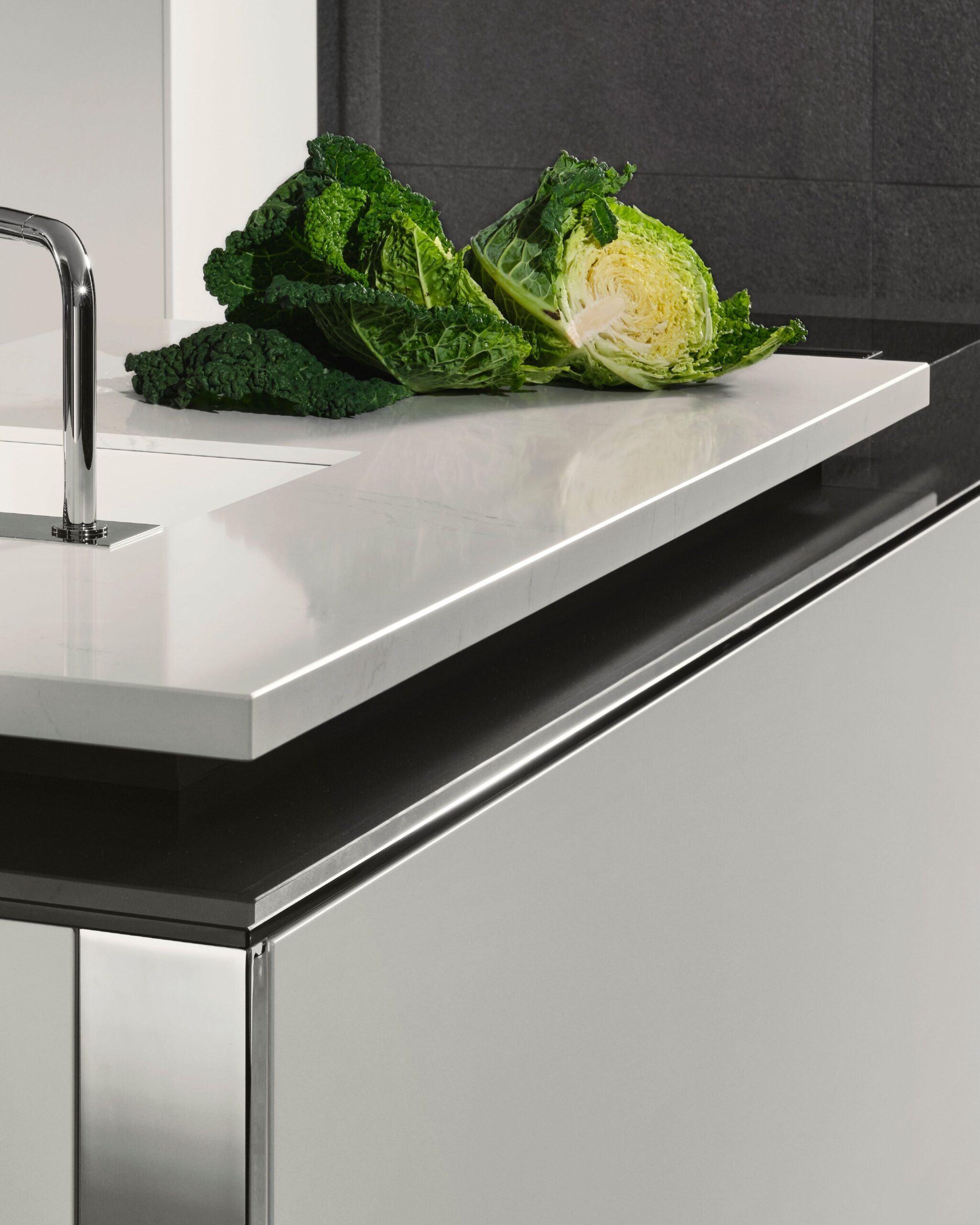 +Venovo utmanar det konventionella med en osynlig bärande ram som lyfter köket från golvet – bokstavligt talat. Resultatet är ett svävande intryck som ger luftighet och lätthet åt hela rummet. Den eleganta toppskivan förstärker känslan ytterligare med sin nästan viktlösa placering.