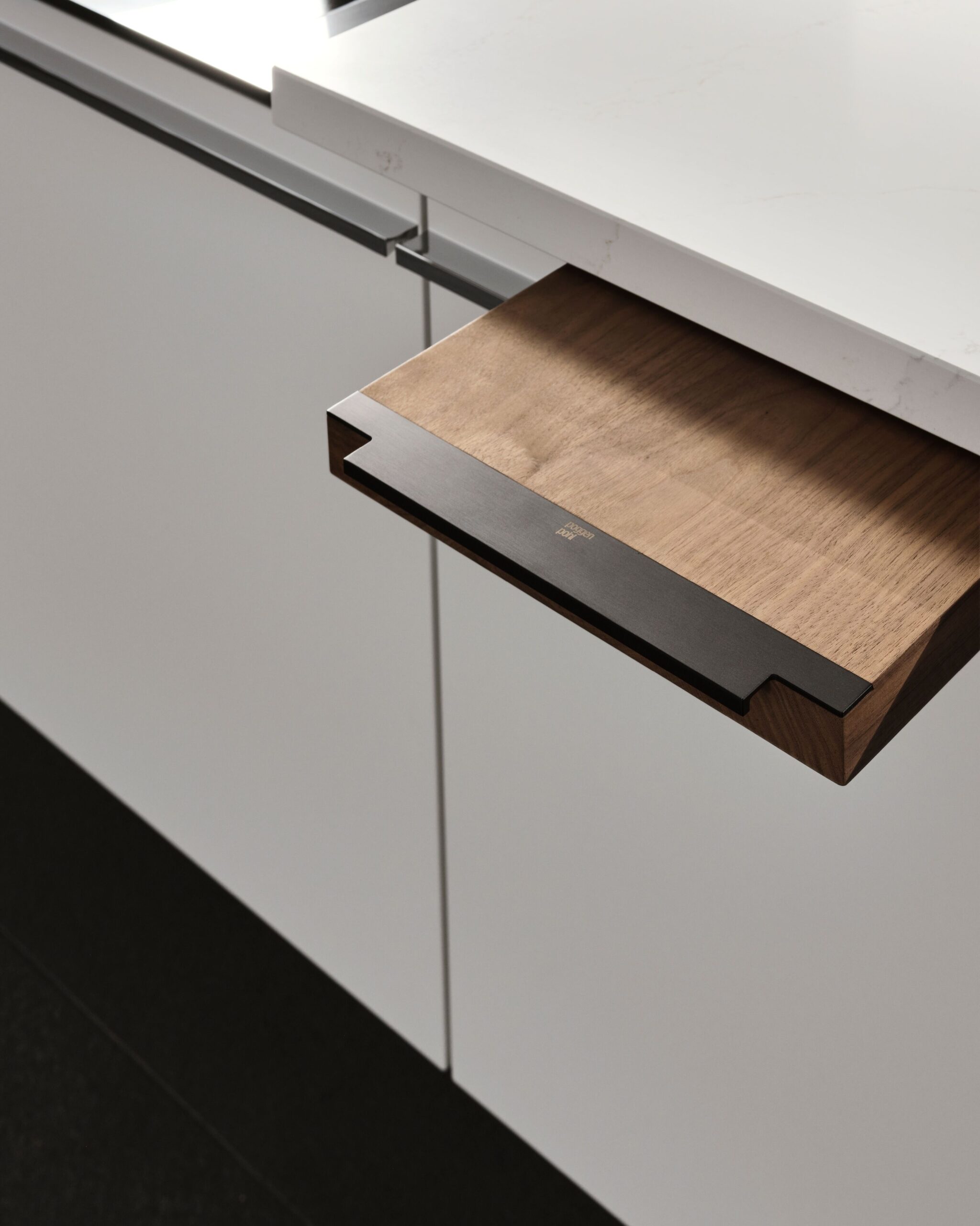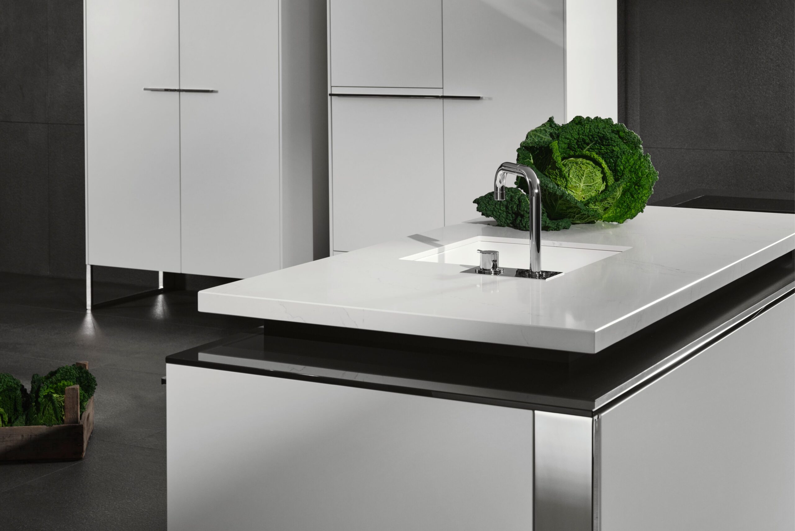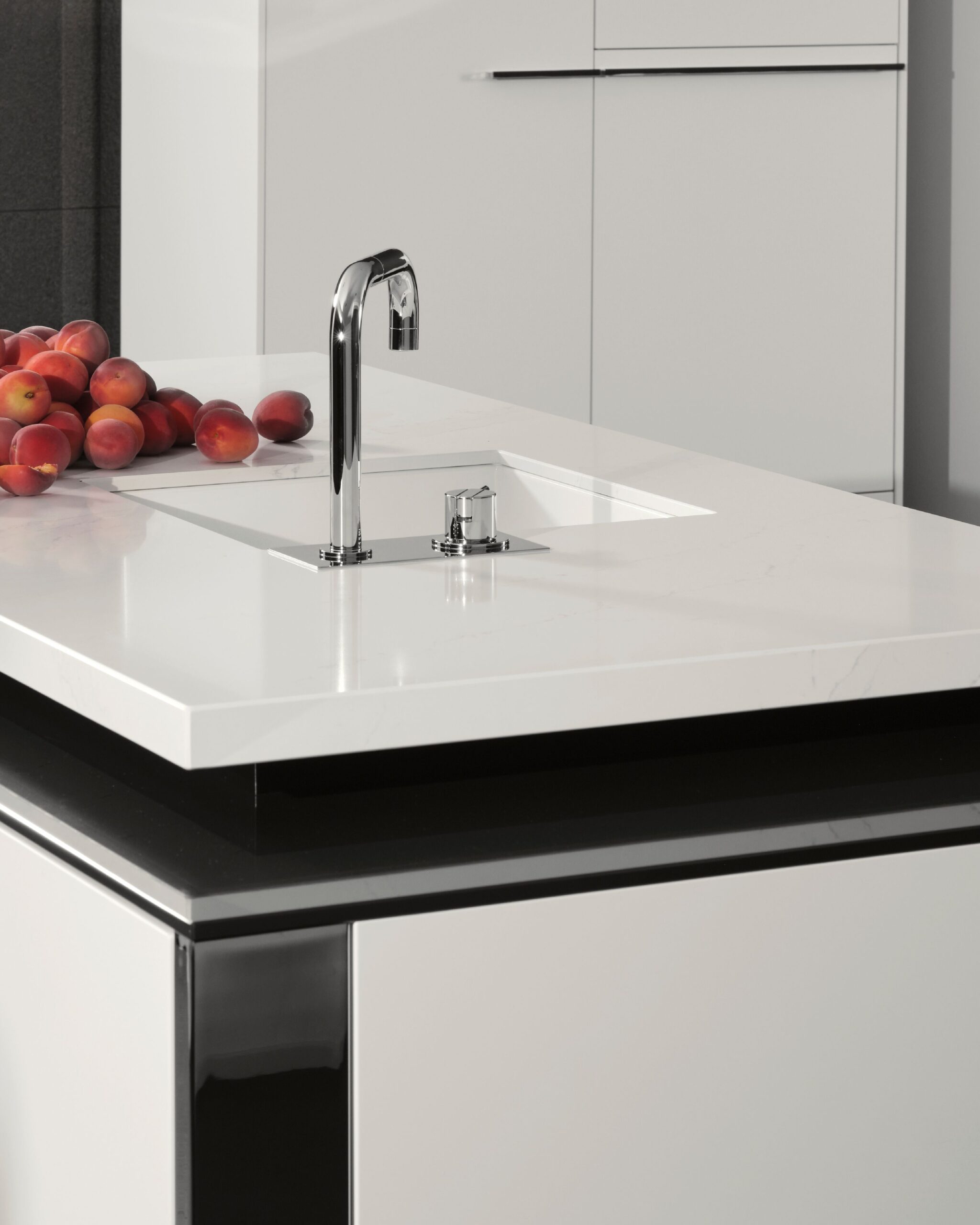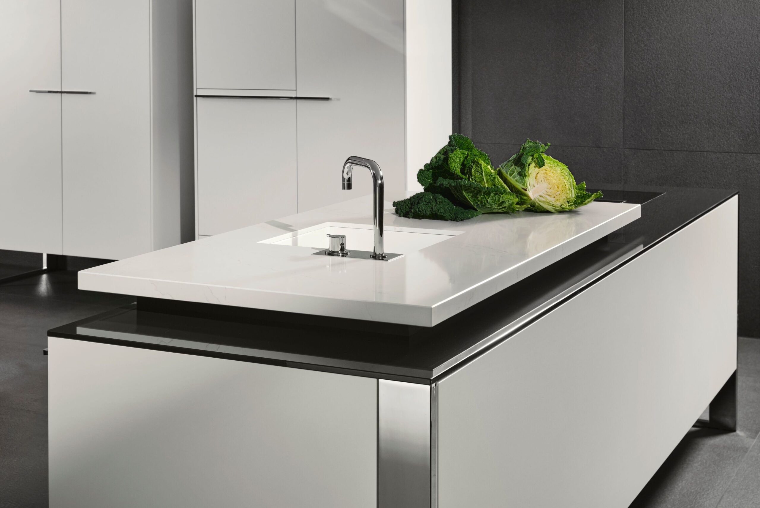 +Venovo utmanar det konventionella med en osynlig bärande ram som lyfter köket från golvet – bokstavligt talat. Resultatet är ett svävande intryck som ger luftighet och lätthet åt hela rummet. Den eleganta toppskivan förstärker känslan ytterligare med sin nästan viktlösa placering.