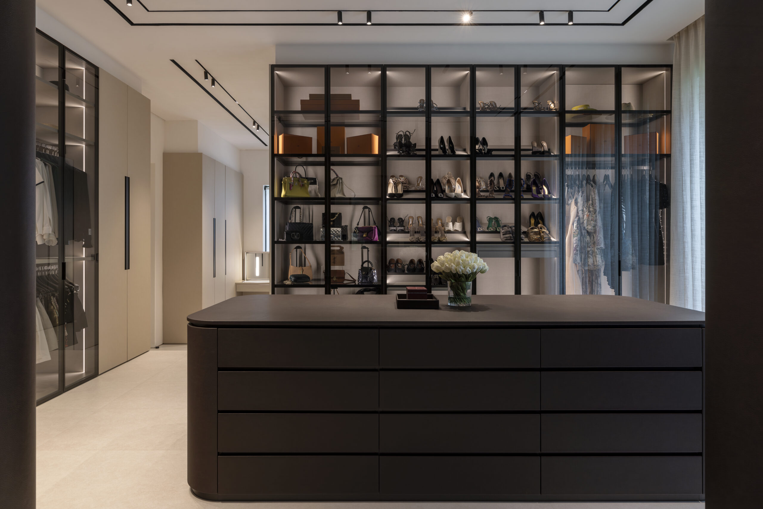 Garderober med vitrindörrar kombinerar skydd och synlighet, vilket låter dig visa upp dina favoritplagg och accessoarer samtidigt som de skyddas från damm. Perfekt för sovrum, hall eller walk-in-closet där du vill ha en stilfull och lättillgänglig förvaringslösning. Välj mellan olika glas- och träramar för att skapa en personlig garderob som både är dekorativ och funktionell.